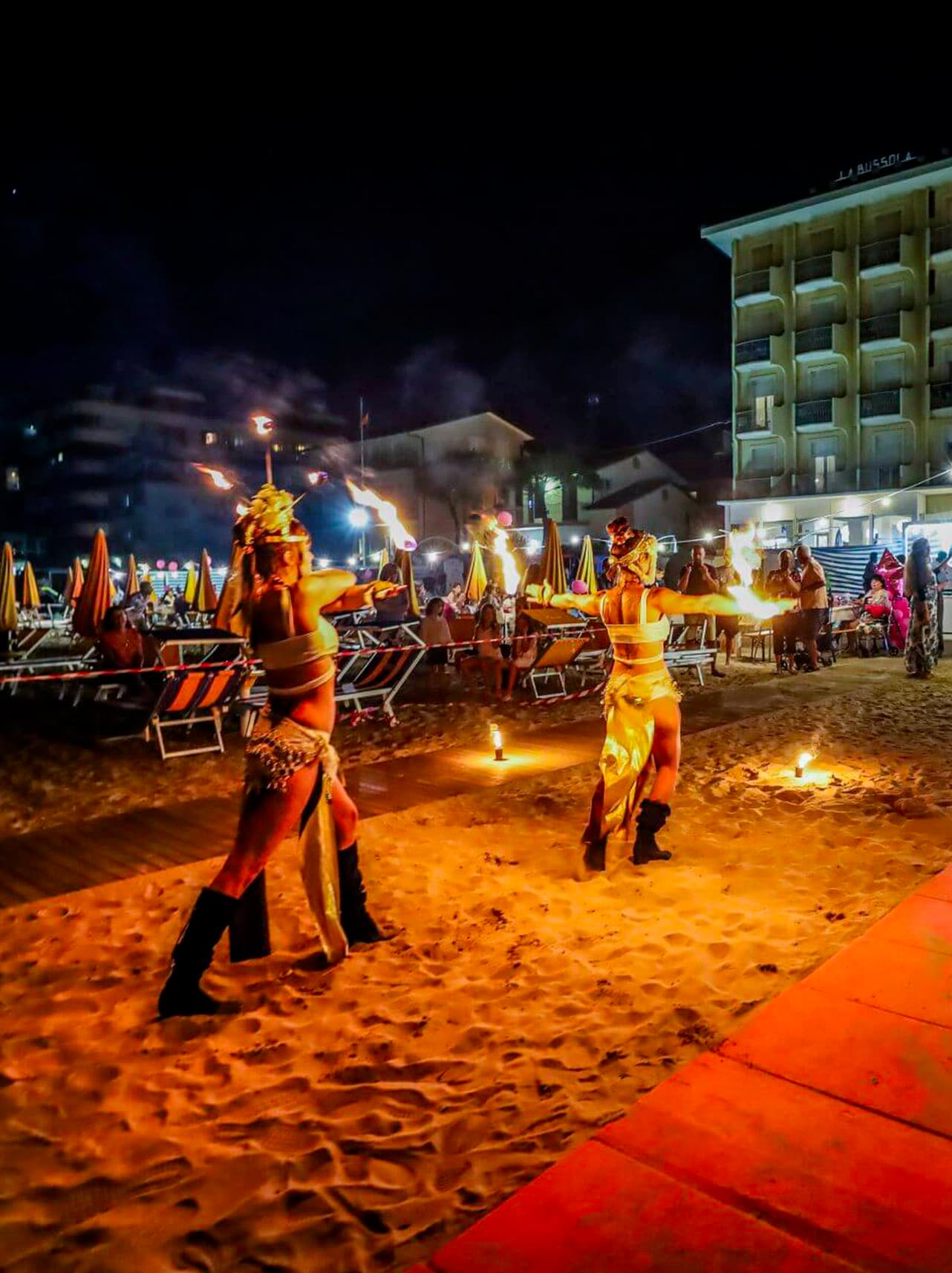 Dal tramonto lo spettacolo prende vita! La spiaggia si anima con giochi e feste